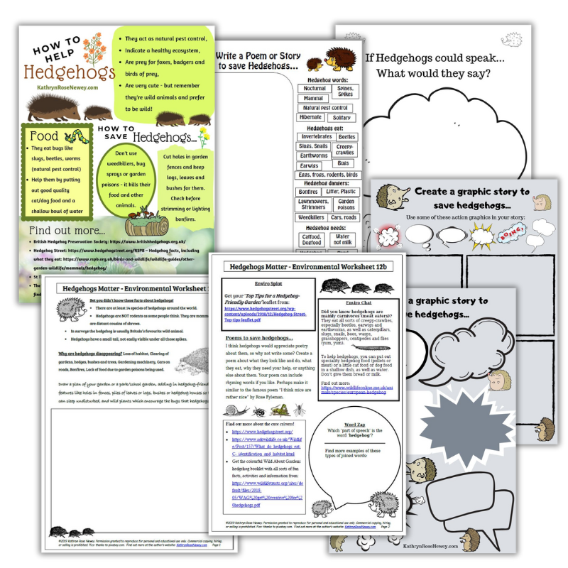 🦔 Hedgehogs Worksheets Young Pack: Poem and graphic story sheets suitable for ages 3-10.